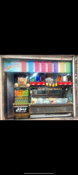 وسایل آبمیوه فروشی،صندق و ذرت طرح تاپینگ ست هم،دوعدد دستگاه آب هویج ای سی ان، اسنک هشت خانه،آب پرتقال گیری البرزطرح جان جان ،شربت سرد کن اگولینی،تابلو ۳ونیم متری ،فریزر درب کشویی و دو درب هم پایین دارد، یخچال میوه مکعبی رنگی،فریزر میزکار ،ده عدد بلندر یونیک با پارچ .