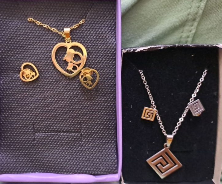 دوتا ست گردنبند وگوشواره هست که فقط گردنبند گوشواره داره دستبند و انگشتر نداره