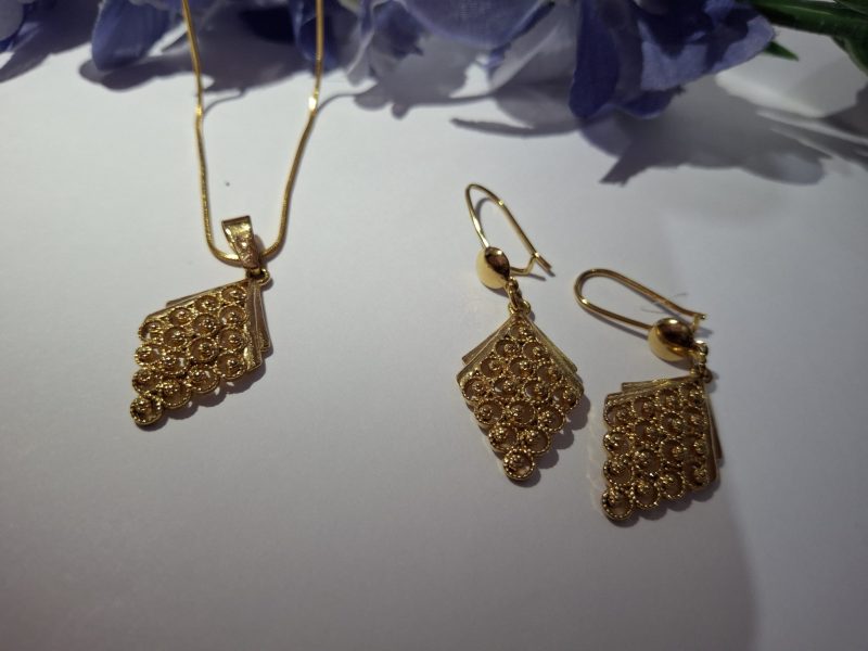 ست گوشواره و گردنبند شیک اصلا استفاده نشده و نوی نو هست به 3 روز هست خریدم و اصلا استفاده نشده خیلی کار شیکی هست برای خانمای با سلیقه رنگش ثابت هست و اصلا رنگش نمیره خیلی ست چشم گیر و خوشگلیه قیمت بالا خریدم ولی با قیمت مناسب در اختیار شما بانوان عزیز میزارم