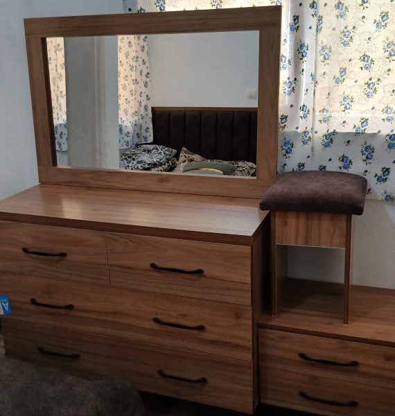 تخت خواب نو جدید سرویس کامل تشک اسفجی فنری طبی رویال زیر تختی نو و روتختی آینه و کمد کشو دار