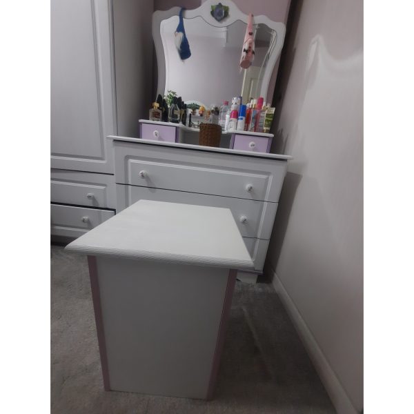تخت و کمد و میز آرایش و میز تحریر و صندلی کاملا سالم فقط کشوی اول زیر کمد نیاز به تعمیر داره