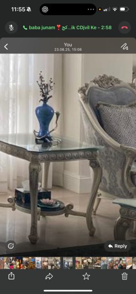 مشخصات کار: سرویس نو تنهایک سال کار کرده جهیزیه عروس کار کاناپه سه نفره همراه چهارتا صندلی تک نفره ناهارخوری هشت نفره شیشه صدمیل ،جلو مبلی کار شیشه وسنگ‌ودوعدد عسلی، شیشها ضد خش ضد لک سنگها مرمر ضد خش وضد لک