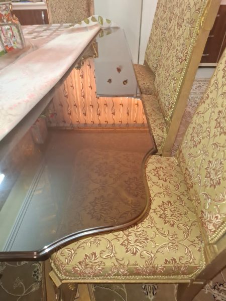 سرویس ناهار خوری 8نفره .چوب عالی . صندلی هاروکش پر درحدنو شیشه میز وپایه ها سالم وکلا بدون زدگی ورنگ رفتگی ویاحتی خط خوش درحدنو