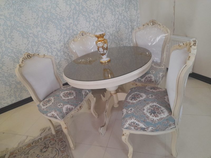 سرویس کامل مبلمان ،میز صبحانه خوری و ویترین مناسب جهیزیه همراه کاور
