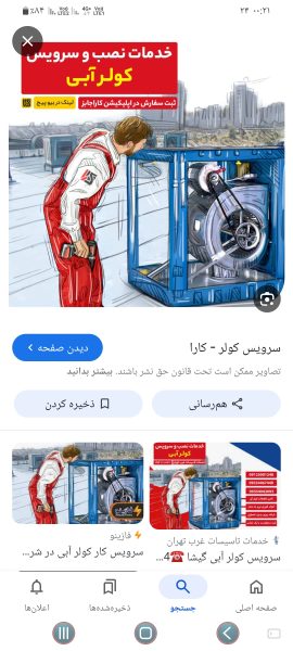 سرویس کامل کولر ابی.خدماتی که انجام میشود .عبارتند از.۱ تعویض پوشال .تعویض شفت و یاتاقان .تعویض دینام و پمپ اب .تعویض حلزونی و پروانه وسط.تعویض سیستم ابرسانی .تعویض کفی و دربها.گرفتن سوراخ کفی با کمترین هزینه .نصب کولر نو ورفع اتصالی کولر .گرفتن لرزش و صدای کولر افزایش دور کولر