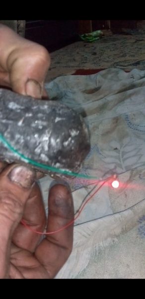سنگی که لامپ روشن میکند بااتصال دوسیم لامپ هرکدام به یک طرف سنگ لامپ روشن میشود واهن ربا هم میباشد