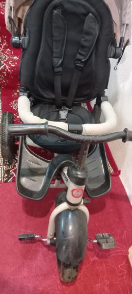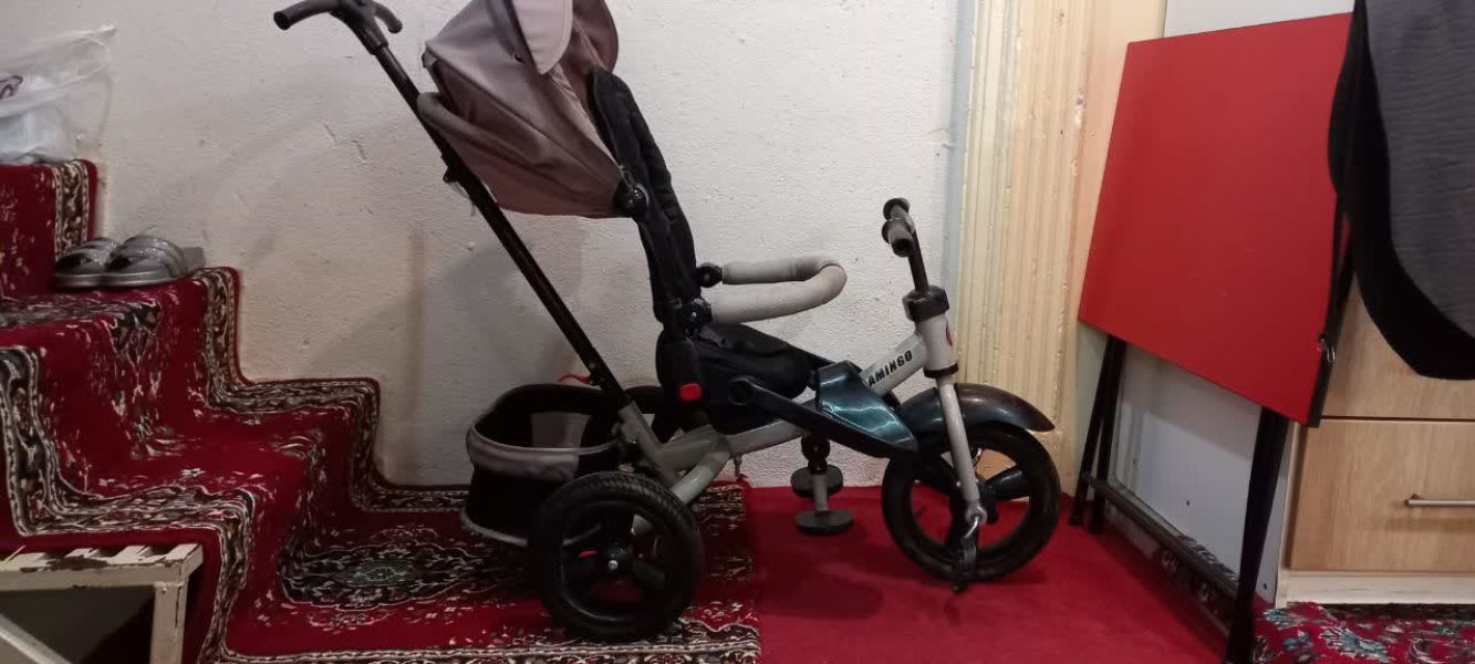 سه چرخه مدل فلامینگو صندلی چرخشی ۳۶۰ درجه سایبان تا شو لاستیکها قابل باد شدن و نرم جنس بدنه ضد زنگ