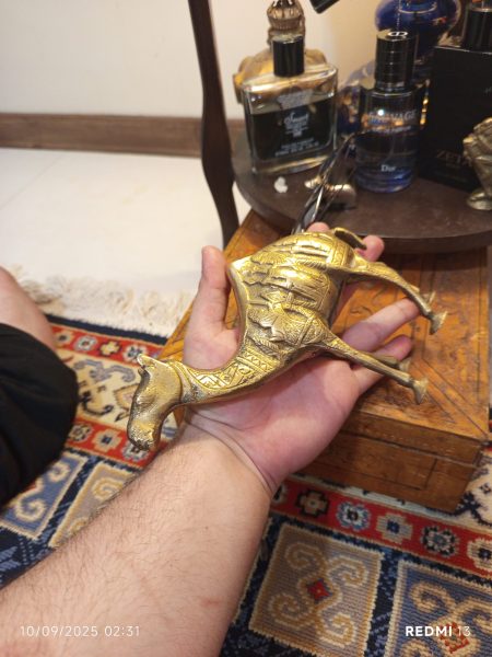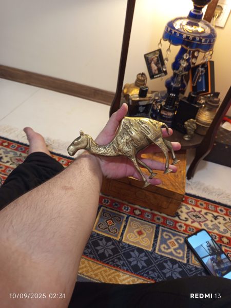سلام درود فراوان یک شتر غلم زنی شده با طرح هخامنشی بسیار زیبا.کلکسیونی و قدیمی. با وزن حدود یک کیلو گرم