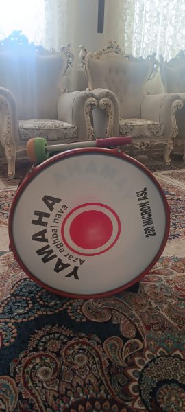 طبل نو سالم انداره متوسط بند دار و چوب بدون نیاز به تعمیر