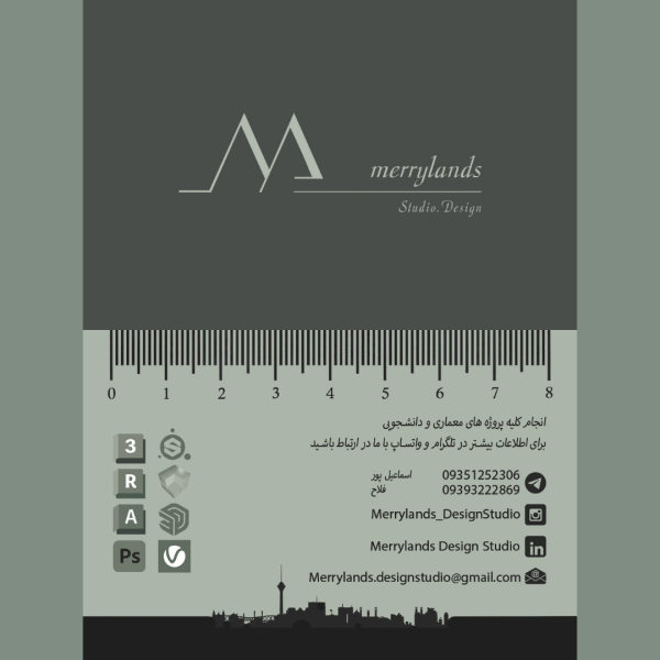 من یک معمار هستم که کارهای طراحی داخلی و خارجی انجام میدم و با همکارم یک گروه معماری به اسم Merrylands تشکیل دادیم که تو زمینه های دکوراسیون داخلی،طراحی ویلا، طراحی نما، طراحی بام سبز، پلان و . . . فعالیت میکنیم؛ همچنین کارهایی مثل طراحی لوگو و کارت و بنر، طراحی جلد کتاب، تایپ و ترجمه انگلیسی، پایان نامه و پروژه های معماری دانشجویی، دیجیتال آرت و NFT هم انجام میدیم.