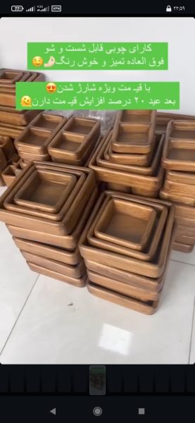 ظروف چوبی کاملا قابل شست وشو چوب روس. با بهترین کیفیت و قیمت تمامی سرویسشم موجوده