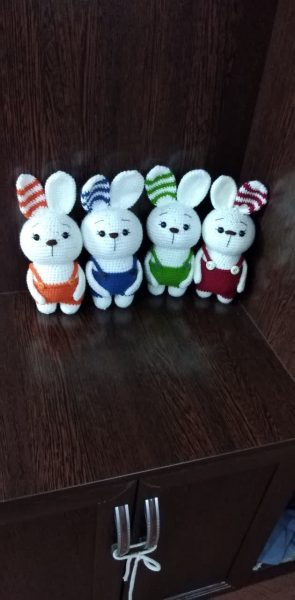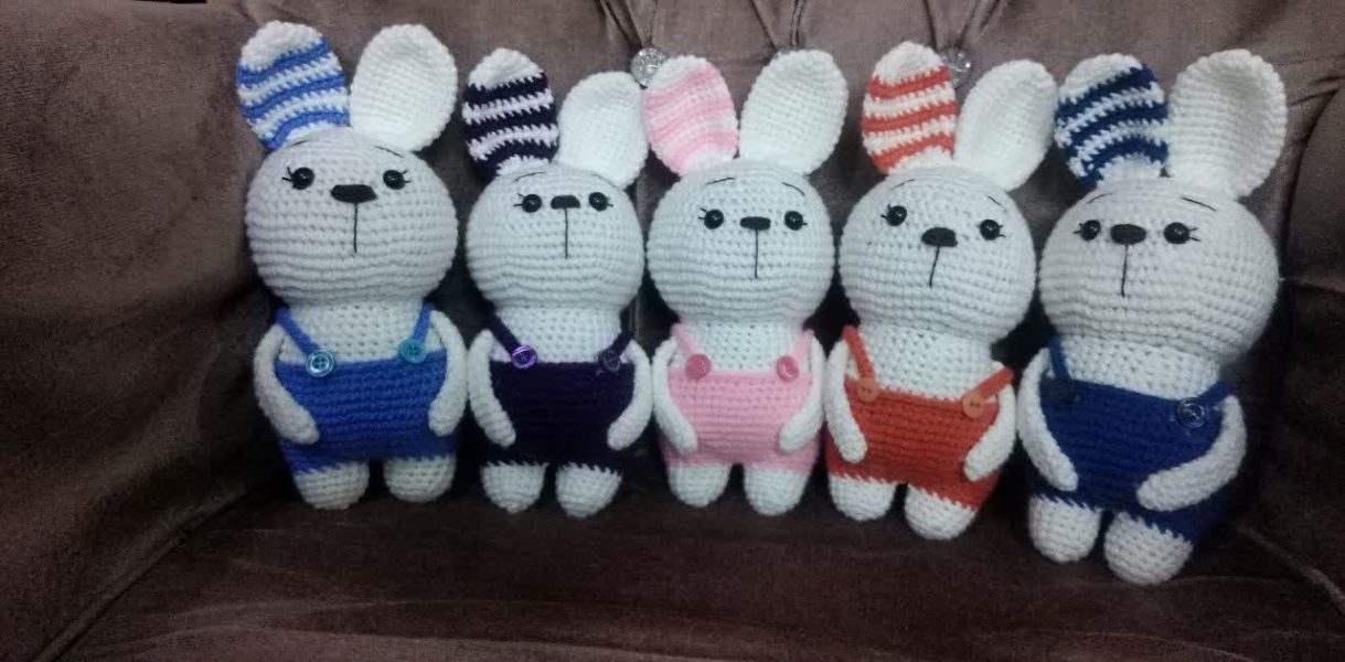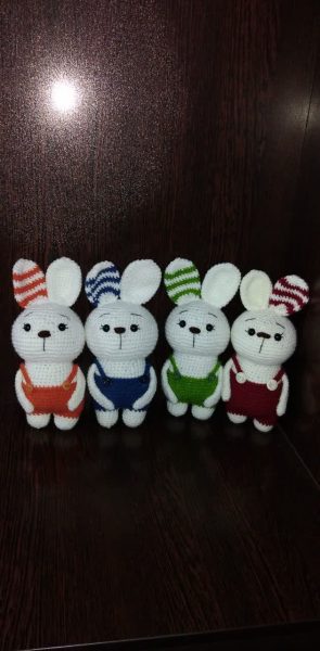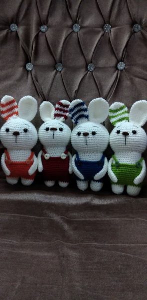 عروسک دست بافت خرگوش در رنگ های متنوع مخصوص روز دختر و هدیه با کادوی زیبا
