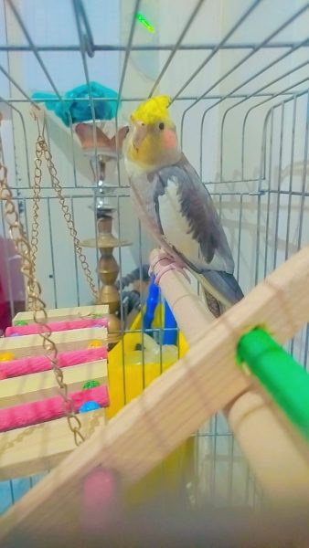 این پرنده از دوماهه گیش دست خودم بوده الانم زمان جفت گیریش رسیده و من نمیتونم جفت بندازمش و بسیار پرنده بازیگوش و دوست داشتنی هست و بسیار دستیه یکی دوتام کلمه از بچگی یادش دادیم که میگه بدوبیا،فوفو و گاهی اوقات هم کلمه های دیگه میگه با پخش شدن آهنگ یا کمی ریتم درجا شروع به رقص می‌کنه. ممنون از شما که وقت خود را برای این آگهی گذاشتید هرکسی هم خواست در خدمتم