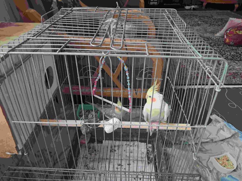 ی جفت عروس هلندی نر و ماده که نر سخنگو هست تقریبا و هر دو دستی به همراه ۲ جوجه که تازه دون میخورن و آماده برای جوجه کشی