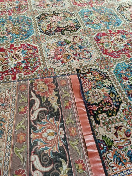 دو تیکه فرش متری کاملا تمیز و سالم با متراژ عرض ۲متر طول4متر و 70سانت لبه دوزی شده بدون هیچ پارگی