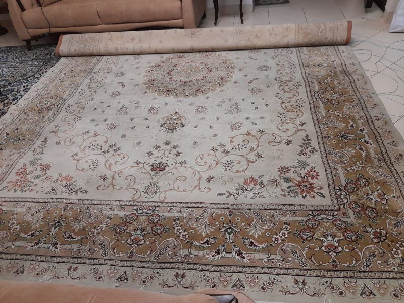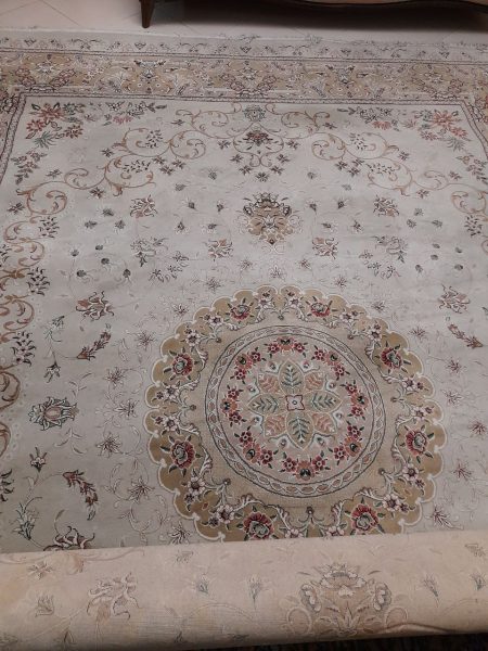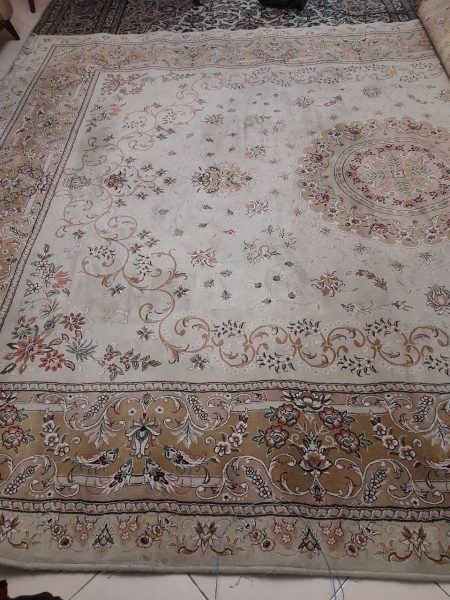 فرش ۱۲ متره ماشینی کاملا سالم و تمیز شیک و کاربردی رنگ کرم رنگ که با هر دیزاینی ست میشه
