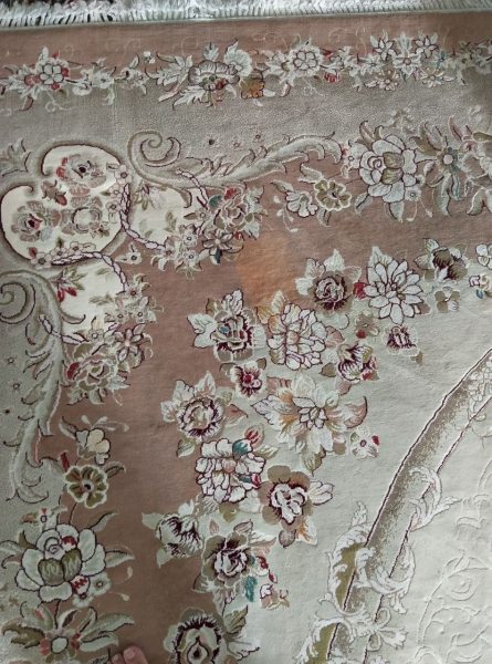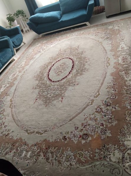 فرش ۱۲ متری کرم روشن با یک جای سوختگی با اتو