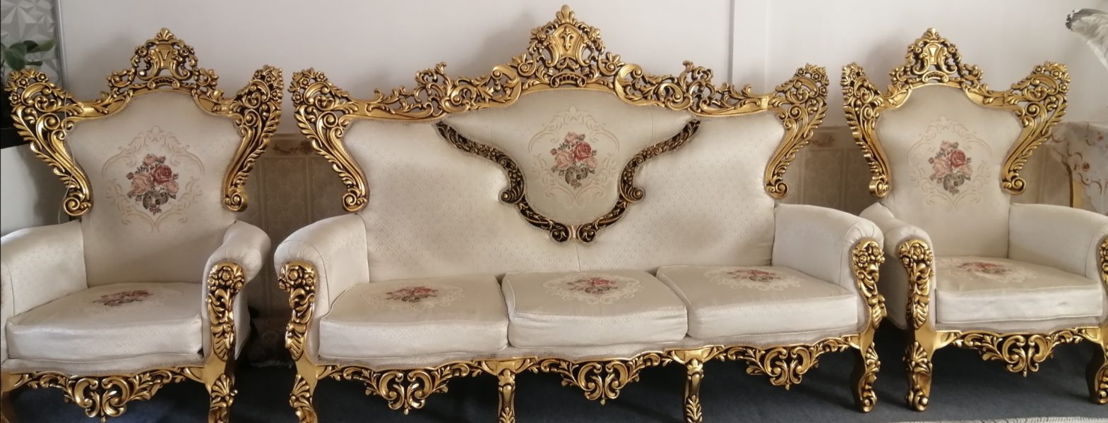 مبل سلطنتی 9نفره همراه سه عدد میز جنس گردو راش