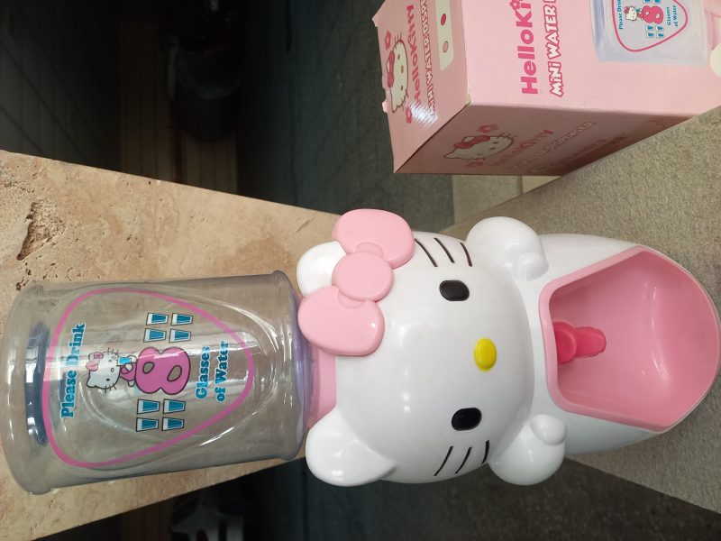آبسردکن کیتی. رنگ سفید و صورتی. مخزن روی آبسردکن هشت لیوان آب یا مایعات ذخیره میکنه. برای نوشیدن آب یا شربت و مایعات توسط کودکان دلبند