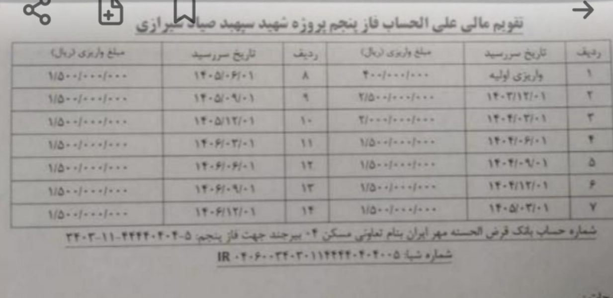 فروش فوری امتیاز فاز ۵ (۰۴)ارتش بیرجند_ تحویلی سال ۱۴۰۶_ واریزی تا این لحظه انجام شده ۵۰۰ میلیون تومان
