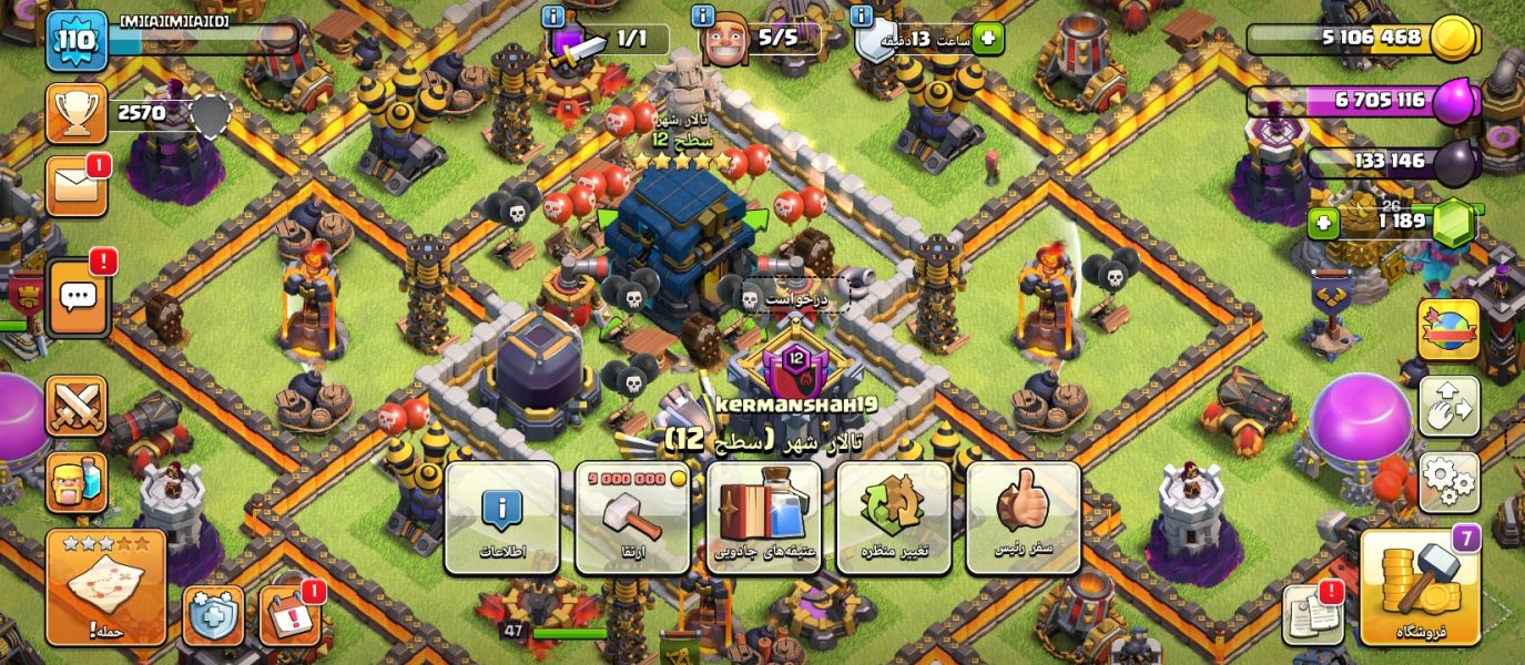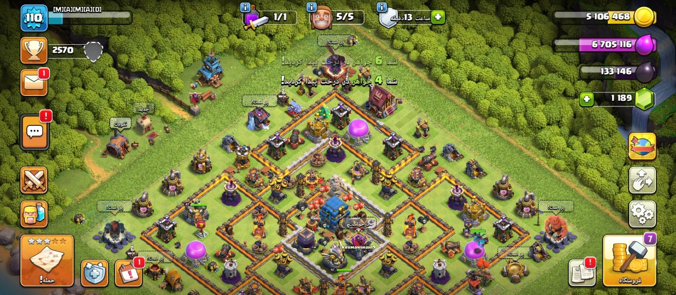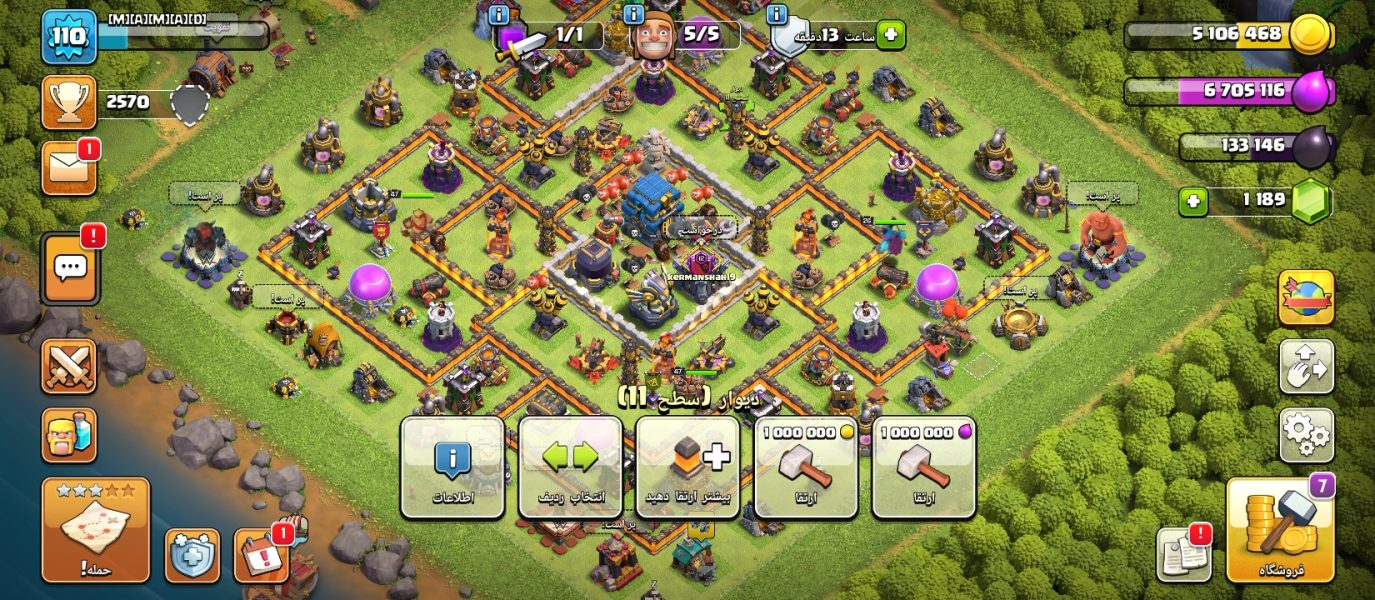 اکانت کلاش لول 110 تان 13 پنج ستاره(مکس) دفاعی ها تقریا همه مکس