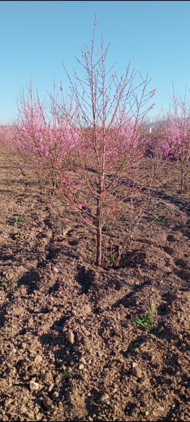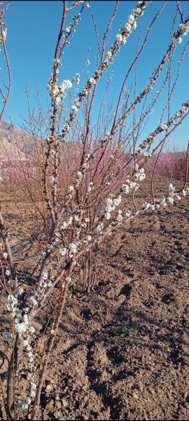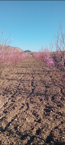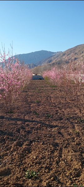 با درختان انار. گردو. هلو . زردآلو. خرم آلو. گیلاس. گلابی. آلو زرد.بادام. آبیاری قطره ای.