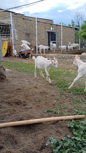 به علت درخت دار بودن باغ امکان نگهداری نداریم هر کدام ۳ قلو زا هستن ۵ کیلو شیر میدن ۱۸ تا بز مادر و ۲۵ تا بز کوچک