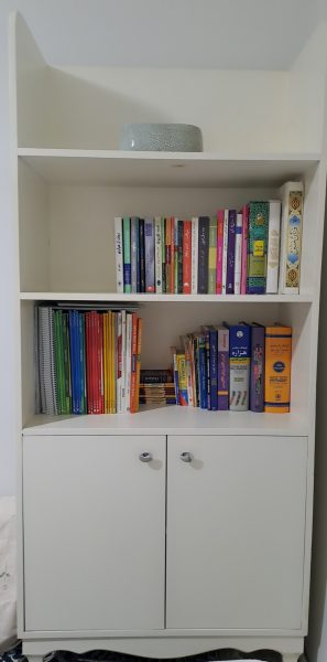 کتابخانه دارای 3 طبقه، دو طبقه کمد در دار، ارتفاع 90، عرض 75، عمق 45