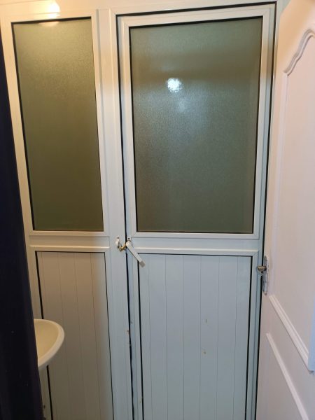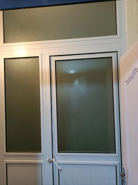 درب آلومینیومی با شیشه های دوجداره اولی به ابعاد 120*210وپنجره بالای درب به ابعاد 60*120