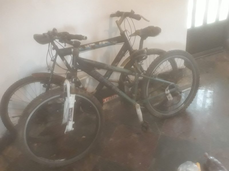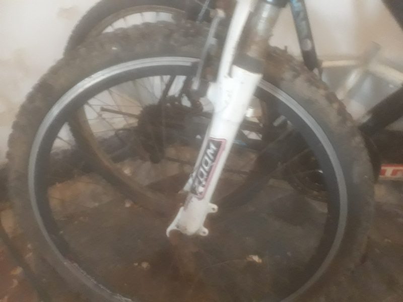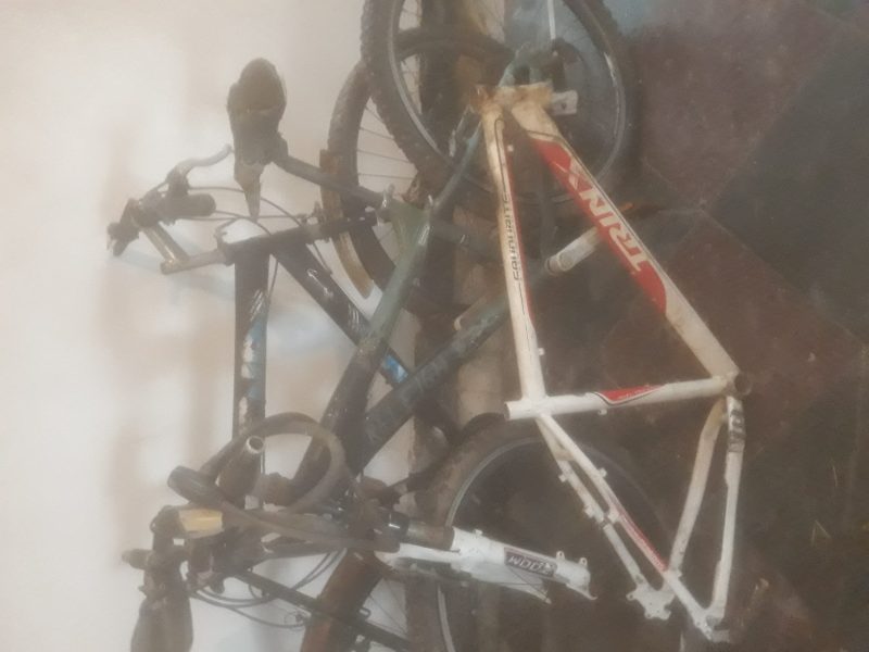 ۲:دومی دوچرخه حرفه ای کوهستان به رنگ مشکی سبزبااسم مارک معتبربدنه المینیومی بدون زنگ کاملاسالم دسته دنده وترمزهاش فلزی لاستیک سالمه رینگ وپرهاش هم سالم ترمزهاش بایدلیک لارژبشه چرخ هاش بادش تنظیم بشه وشارژبندش تعمیربشه خرج خیلی زیادی نداره خیلی خرج کمی داره وبایدشسته بشه یکسال کسی استفاده نکردخوابیده بود حتی جک حرفه ای داره کاملاسالم .