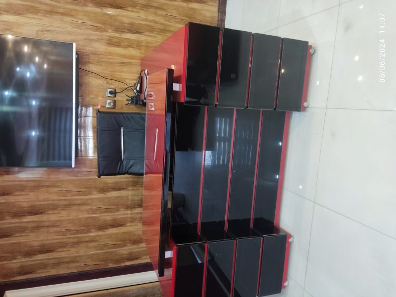 سلام ام دی اف هایگلاس ترک و فوق العاده جادار و زیبا طبقات ویترین میکاپ کشویی کار شده .داخل میز مدیریت هم دو تا کمد جداگانه هست که هر کدام دو کشو و دو طبقه دارند هم به صورت تکی و هم کلی دکوراسیون سالن به فروش میرسه قیمت هم توافقی هستش