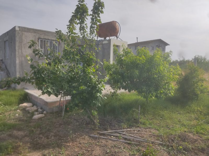 یک قطعه زمین باغ دارای اطاق و سرویس بهداشتی ودرختهای متنوع وچاه آب دور زمین فنس کشیده شده است
