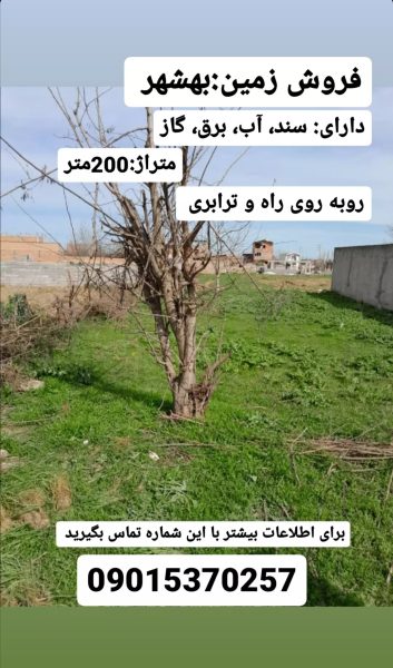 فروش زمین دارای سند، آب، برق، گاز