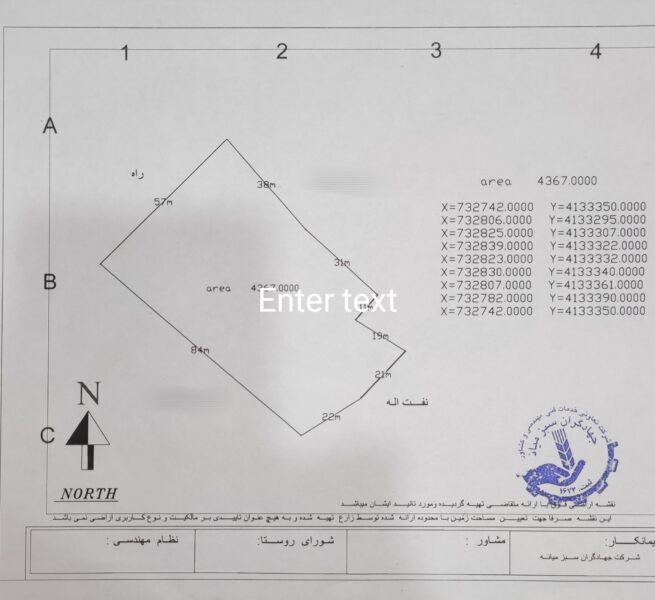 | نوع کاربری زمین | کاربری کشاورزی |