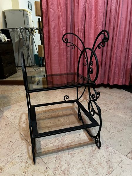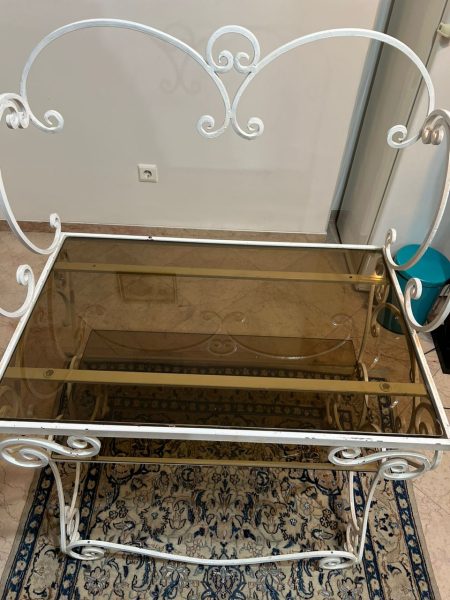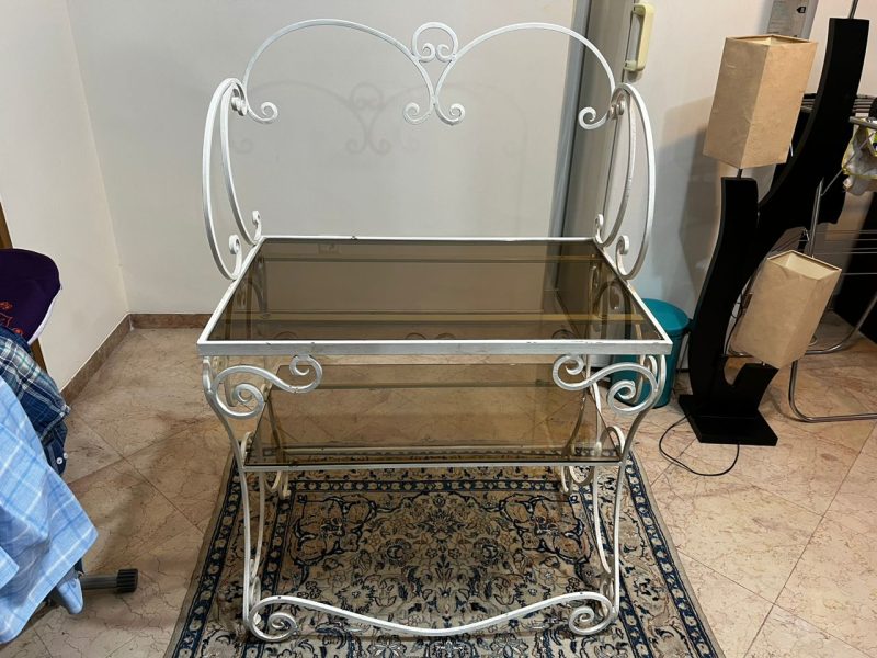 سه تکه شامل میز تتلویزیون دو طبقه فرفورژه و پایه فرفورژه پاتختی