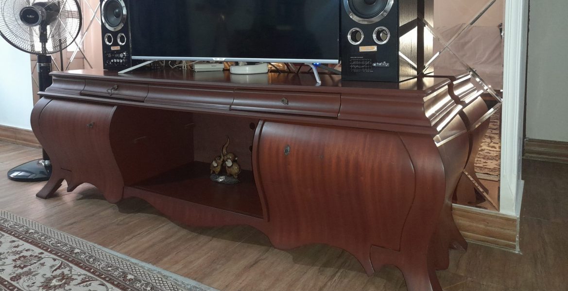 میز تلویزیون کاملا سالم.دو کشو بالا داره.دو تا در پایین هم جا دار هستش و بزرگ.تازه دوماه از عروسیم میگذره واسه جهیزیه ام بود.دلیل فروششم اینه ک تلویزیون رو رو دیوار میخوایم وصل کنیم وگرنه میز سالم سالم.