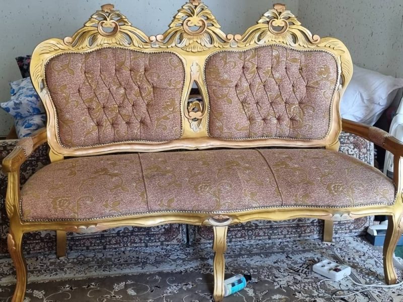 یک دست مبل استیل طلایی رنگ در حد نو (۹نفره)