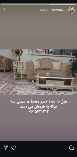 فروش مبل نه نفره به علاوه میز وسط و عسلی سه تیکه شرکتی