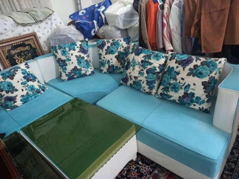 فروش مبل ال ۷نفره سالم بدون شکستگی وشیک با میز وسط