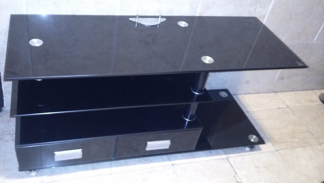 یک عدد میز تلویزیون شیشه ای سالم در حد نو قیمت توافقی