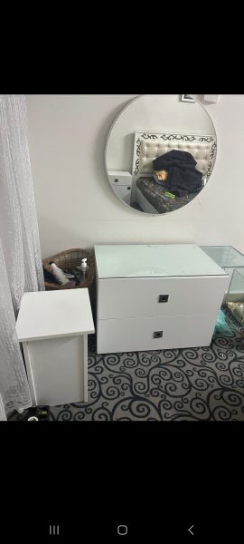 پاتختی و میز آرایش و آینه و کمد بزرگ که داخلش شامل چندین کشو هست