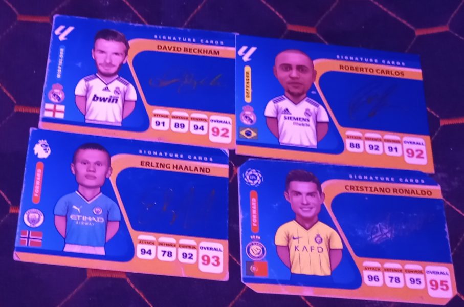 چهار عدد کارت فوتبالی امضایی رونالدو/ هالند/روبرتو کارلوس/دیووید بکام