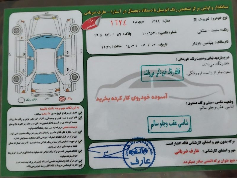 کوییک مدل ۱۳۹۹ بدنه بدون رنگ و همه شاسی ها سالم