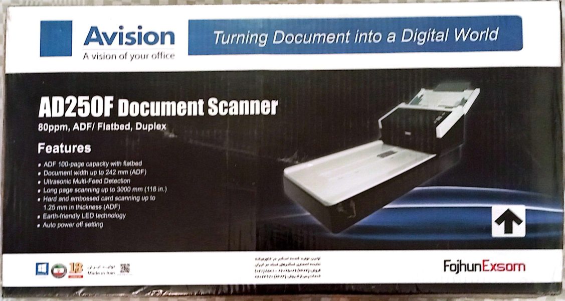 اسکنر حرفهای Avision مدل AD250F – آکبند و پلمپ، بدون استفاده