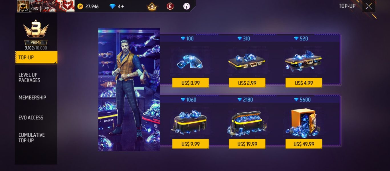 طاق میزنم با اکانت فری فایر بهترین اکانت ماهانه هم جم خرده