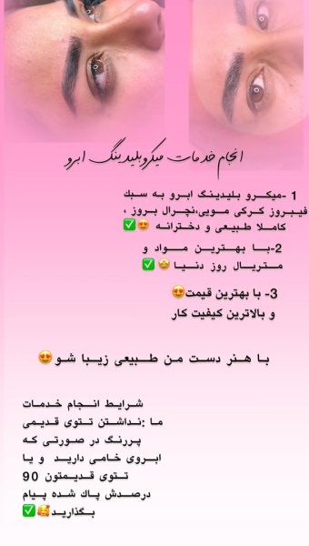 انجام خدمات میکرو بلیدینگ ابرو با بهترین قیمت فیبروز مرکزی مویی کاملا نچرال طبیعی و با بهترین متریال کار برای افرادی ک ابرو های خام و تتوی قدیمی خیلی کمرنگ انجام میشود