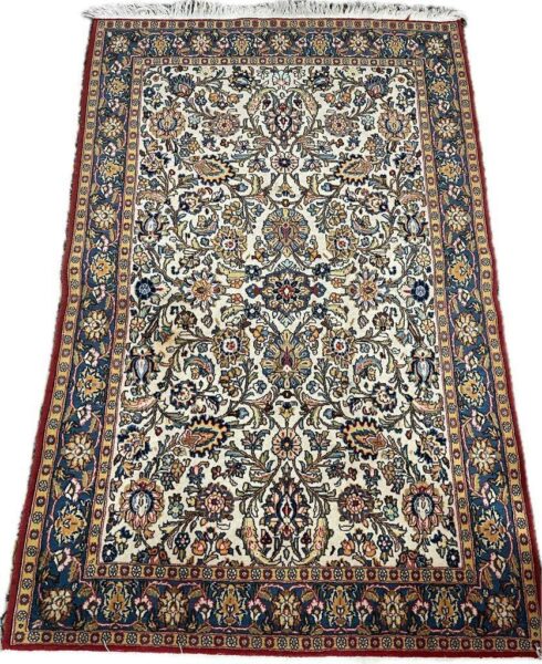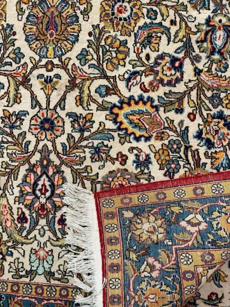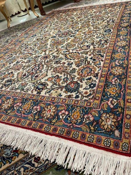 قالیچه(قم) گلها ابریشم جنس پشم