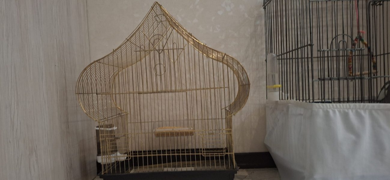 قفس نو است فقط یک هفته استفاده شده است مناسب برای عروس هلندی و انواع پرندگان رنگ طلایی سابت و دارای اب خوری و جای غذا.