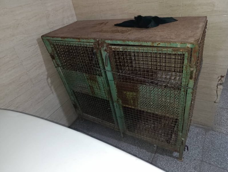 قفسی دارم قد یک متر و بیست عرض هفتاد دور تا دور تور آهنی سفت و محکم دارای دو در و دو طبقه میباشد