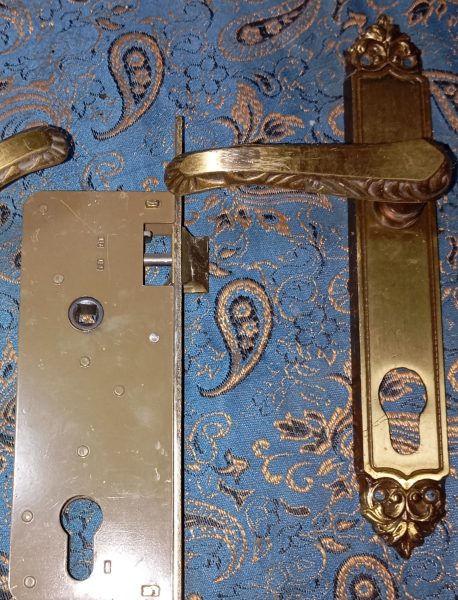 سه سرویس دستگیره همراه با قفل مغزی قدیمی ایتالیایی رنگ ثابت در حد نو،تمیز و سالم عکسها نمایانگر تمیزی محصول میباشد.